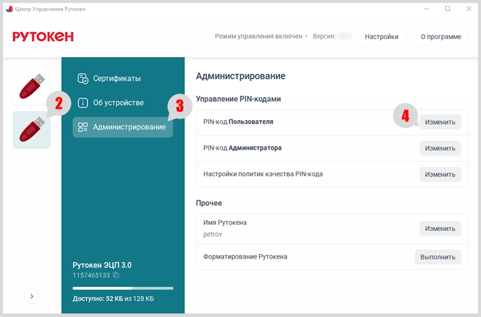 Чтобы изменить PIN-код Пользователя, необходимо посмотреть политику смены PIN-кода Пользователя.