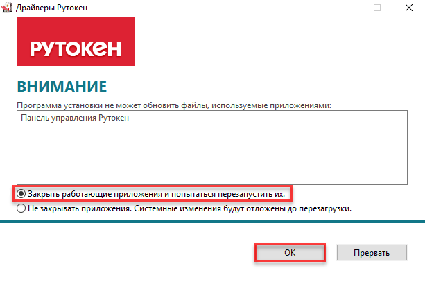 Перед установкой комплекта драйверов закройте все работающие приложения и отключите устройства Рутокен от компьютера.