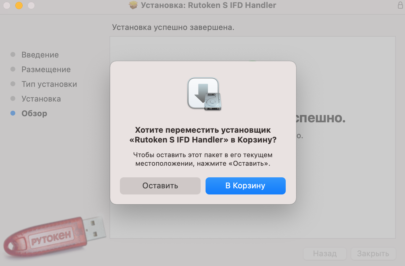 Установка комплекта драйверов Рутокен в пассивном режиме